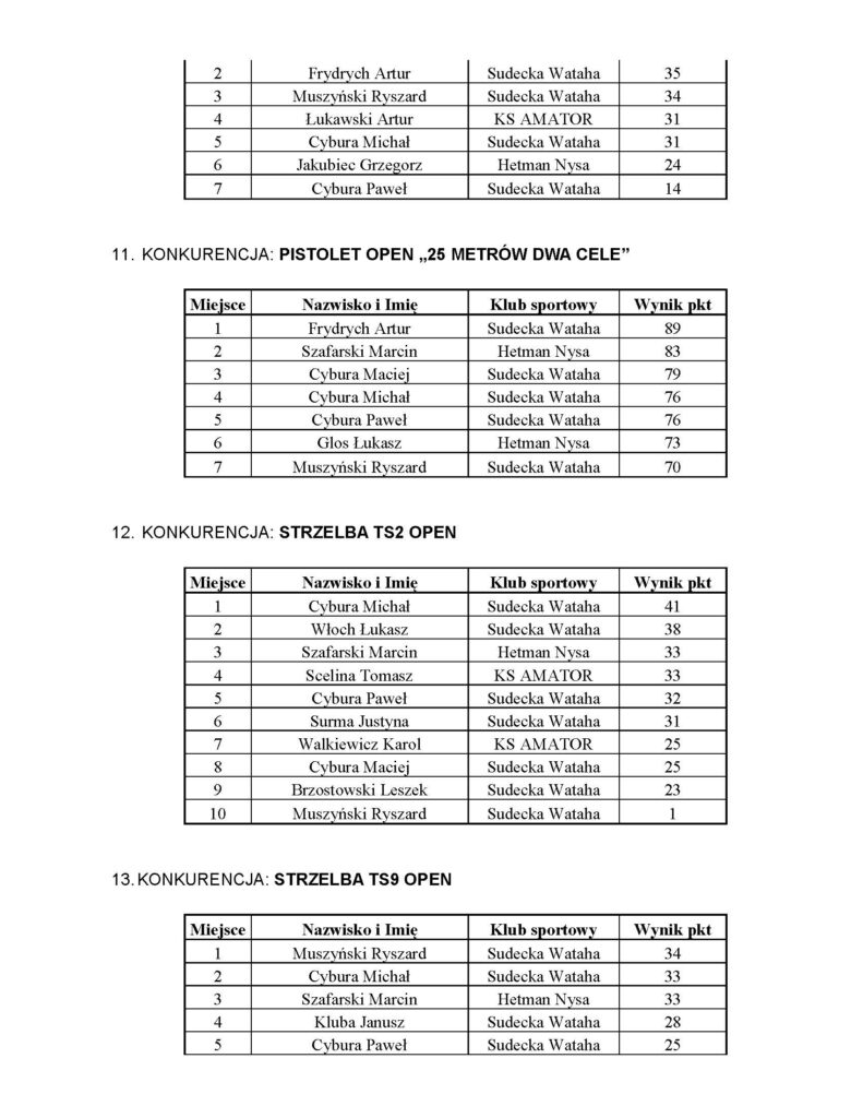 KOMUNIKAT Z ZAWODÓW STRZELECKICH O PUCHAR PREZESA – 06.12.2025r.